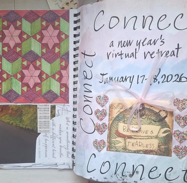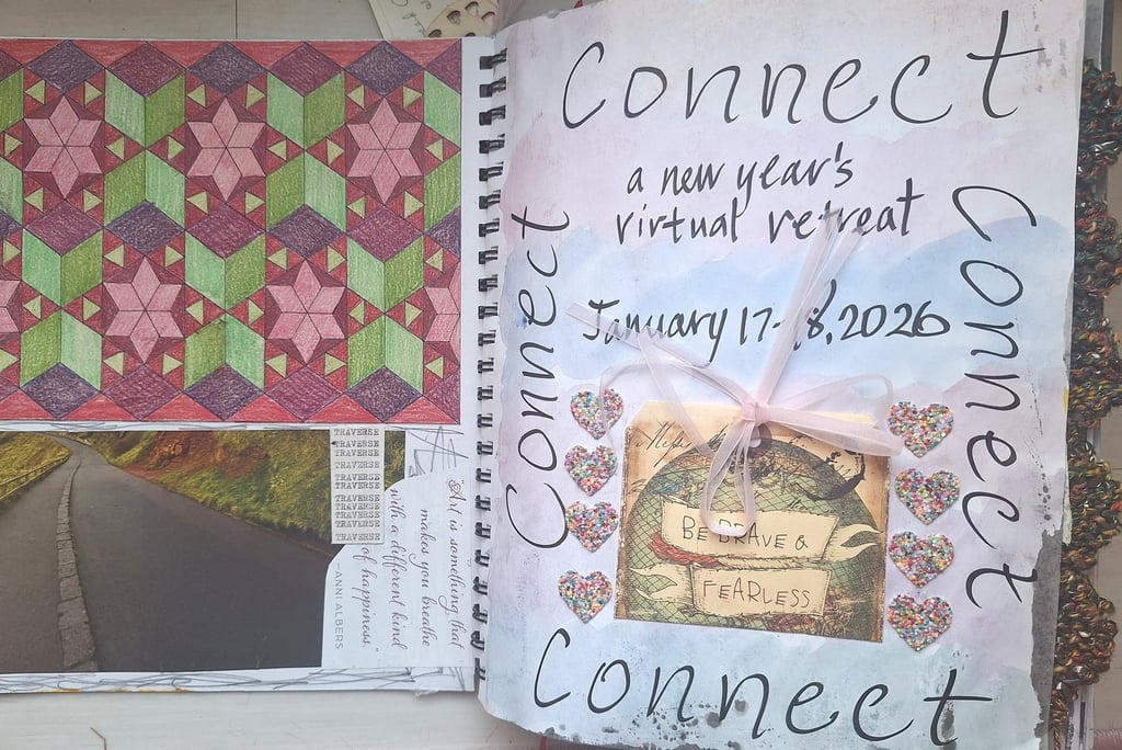 I participated in a fabulous online retreat weekend with Eric Scott, "CONNECT." He suggested we work in an journal and I chose one with mixed media paper so I could use wet and dry media. It was a most creative way to begin the new year with lots of fresh ideas and enthusiasm. I chose a theme word for myself, traverse. The new year brings movement towards new things in my life which is exciting and wonderful.