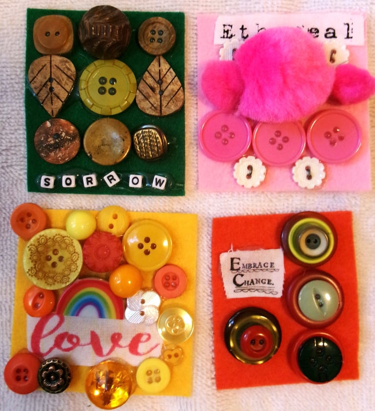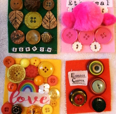 Join me for hands-on artmaking to focus on the part of your bereavement that is expressed VISUALLY. Touch and manipulate beads and wire to create a bracelet--cut and hand stitch scraps of fabric on a shirt that you can wear--glue bits or alphabet beads on a felt base to make a magnet reminding your person's nature or character.